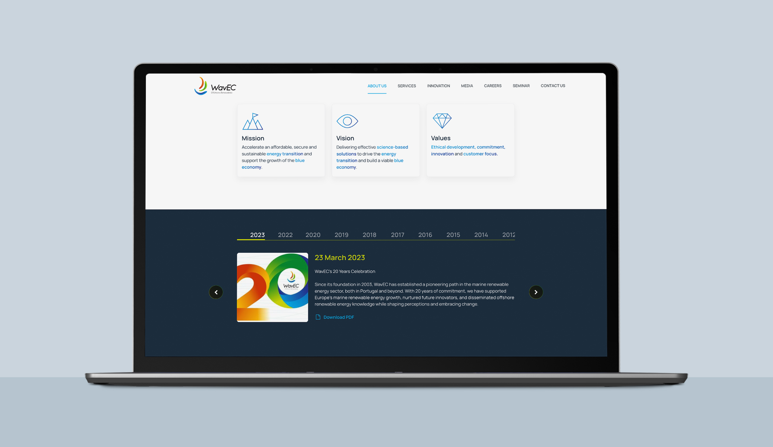 For their new website, WavEC wanted to communicate clearly that they are a consulting company in the area of marine renewable energy. Focus on clear navigation and hassle-free access to each section was a key element for this project, creating a responsive structure that works well on different mobile devices.