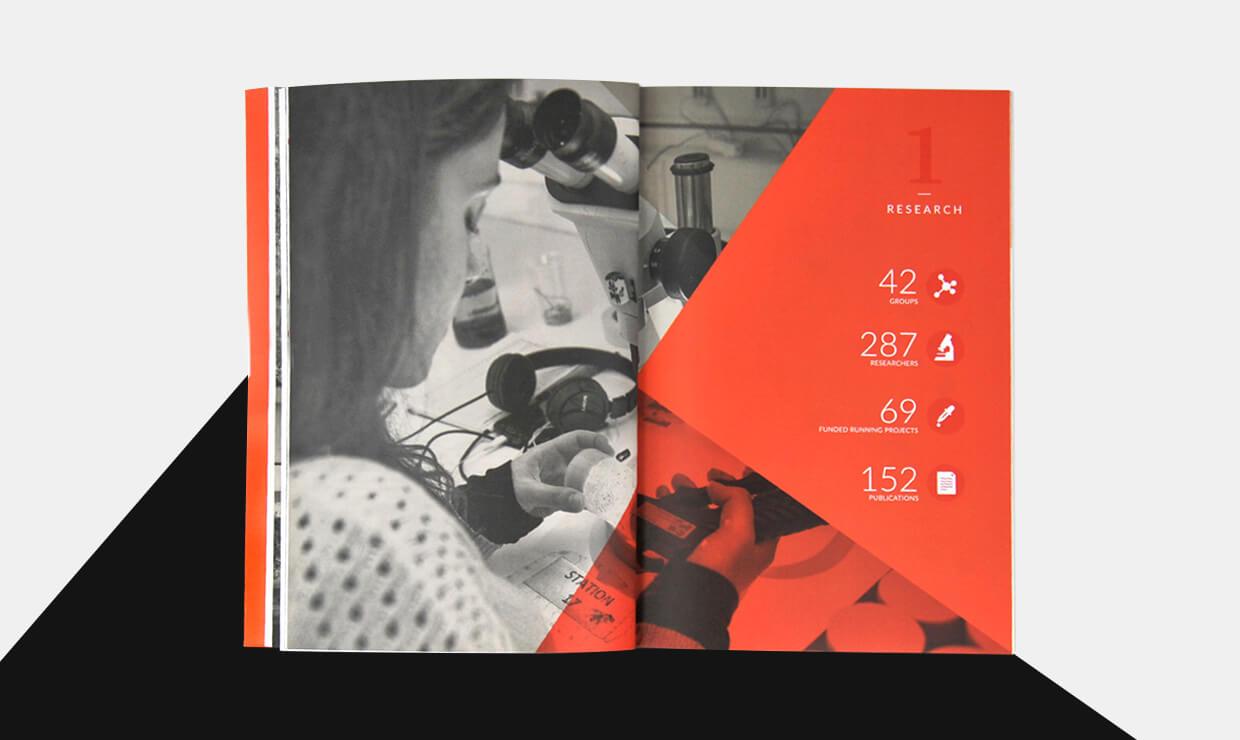 The publication highlights information about the projects and research groups that work in the institute. The infographics created for the layout allow a better understanding of the data presented in this publication.