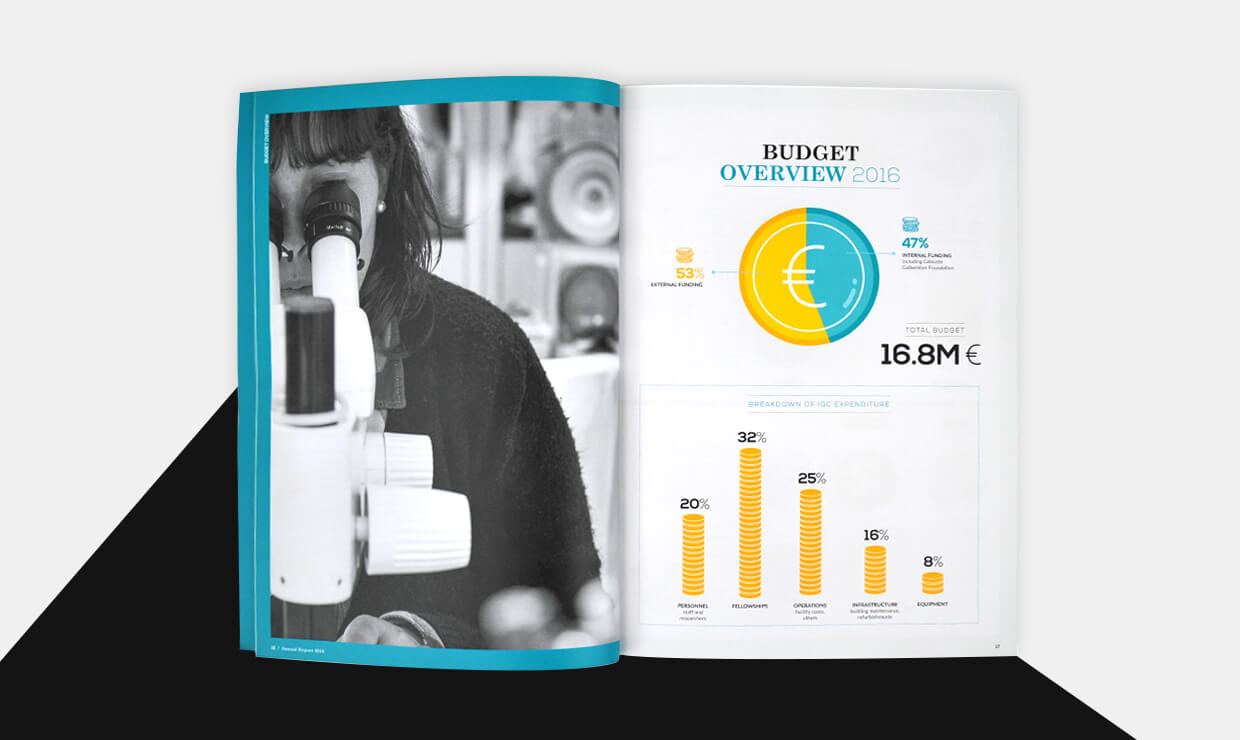 The 2015 and 2016 Annual Report for Instituto Gulbenkian de Ciência is an overview of the financial investments of the institute throughout the year.